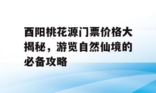 酉阳桃花源,位于重庆市酉阳土家族苗族自治县,是一个融合了自然风光与人文历史的旅游胜地,近年来,越来越多的游客慕名而来,探寻那一片被誉为“世外桃源”的地方,关于酉阳桃花源的门票价格,许多游客心中仍有疑问,本文将为您揭开酉阳桃花源门票的神秘面纱,助您规划一次完美的旅行。