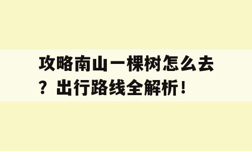 南山一棵树怎么去,以上就是详细的出行路线,无论你是乘坐公共交通、自驾、骑行还是步行,都能轻松到达这个美丽的地方,希望这篇文章能对你有所帮助,祝你旅途愉快!