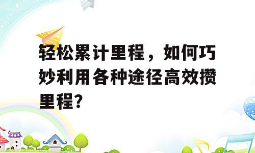 在现代社会,里程累积已经成为许多消费者热衷的活动,无论是乘坐飞机、火车还是使用信用卡,累积里程都意味着潜在的优惠和福利,如何高效地累计里程,让每一分投入都转化为实实在在的优惠,成为了许多人的疑问,本文将为您揭秘如何巧妙利用各种途径高效攒里程。